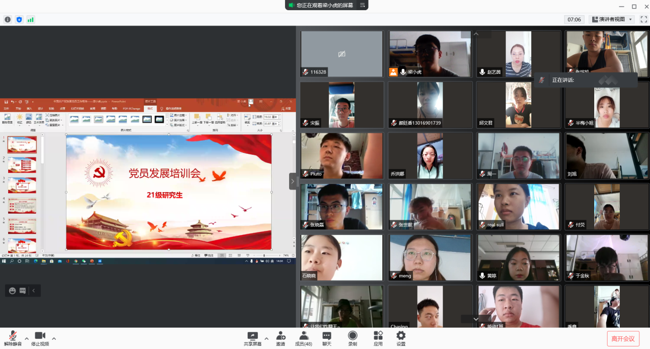为进一步做好发展党员工作,保证党员的发展质量,激发新时代大学生爱党爱国情怀,结合党章和党史学习教育,2021年9月11日下午色情小说 党委面向21级研究生开展了线上“党员发展培训会”,对21级的新同学们进行培训。会议由党务干事赵艺茵老师和21级党员梁小虎主讲。