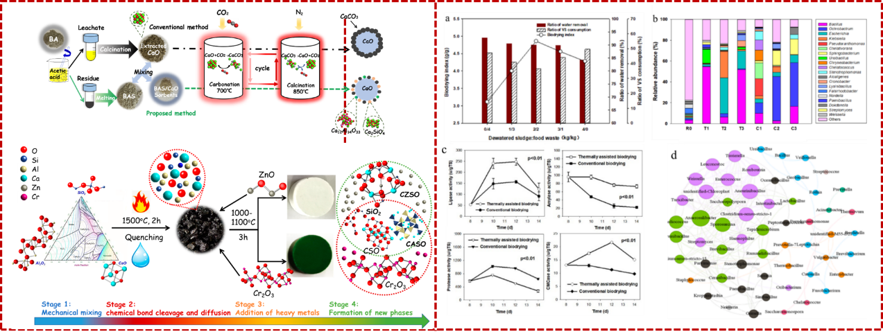固废高值化制备微晶玻璃及重金属固化机理;固废基双功能催化剂的制备及其吸附/催化转化CO2研究;城市有机垃圾生物干化预处理及热转化利用技术。
