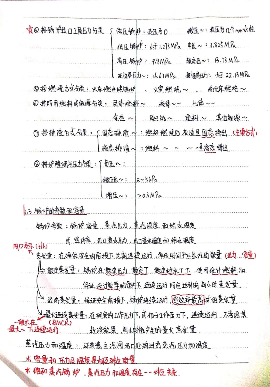 系统的将锅炉原理课程所学的知识框架摘录出来,并对一些重点内容进行了批注,使知识结构更加具象。笔记中只用了黑色和红色记号笔,是为了使笔记内容更加清晰简洁,一目了然,有利于以后对知识的复习与回顾。