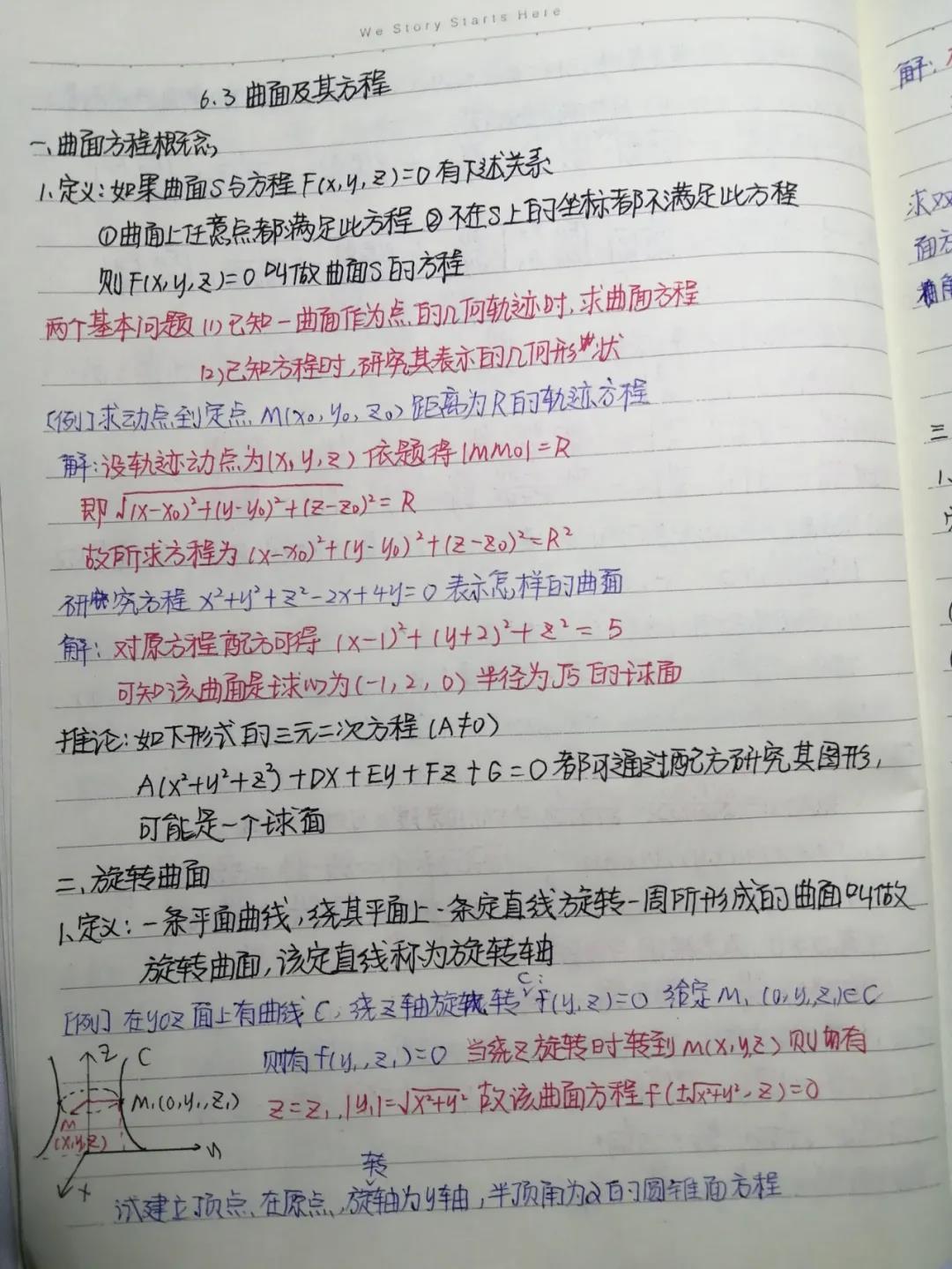 在抗击疫情期间,同学们在学习上也没有丝毫的懈怠,认真的做好了笔记。下面是我高等数学中“多元复合函数求导法则,空间曲线”和大学物理“功”这两部分的部分笔记,仅供大家参考。
