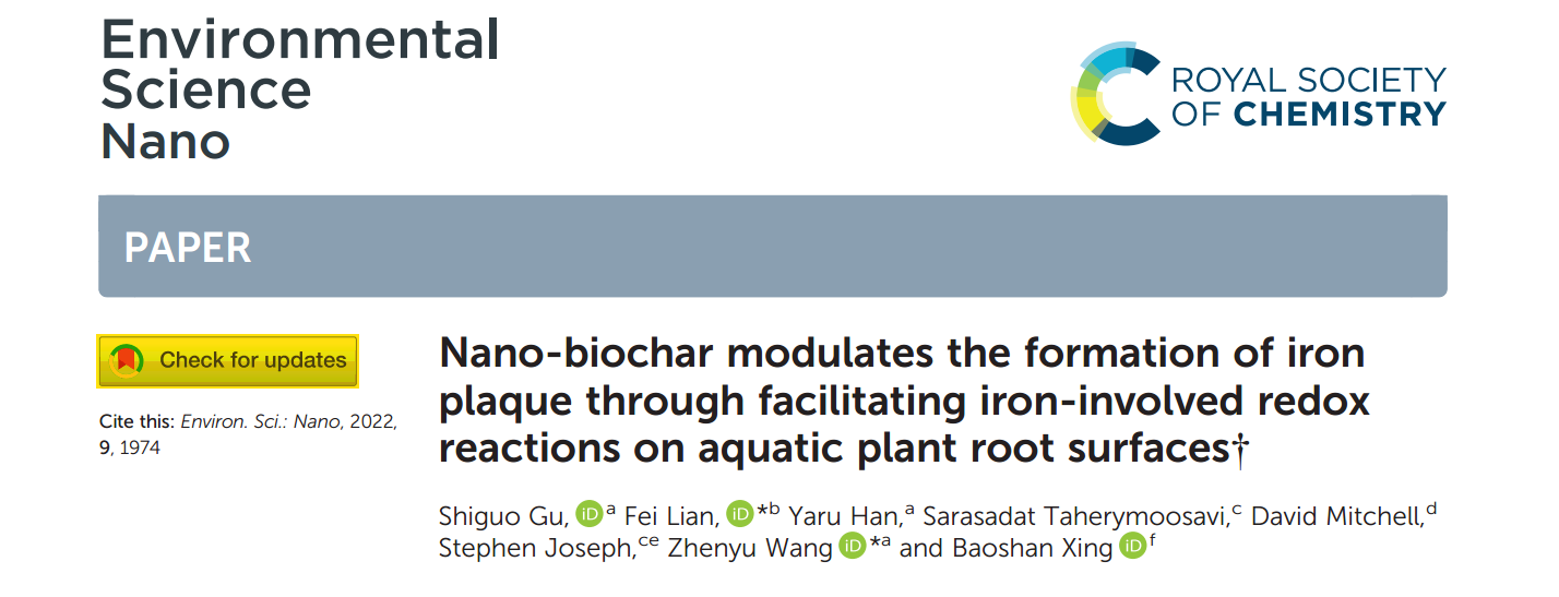 近日,色情小说 廉菲教授课题组在纳米生物炭的环境行为及其生态功能领域取得重要研究进展,相关成果分别以《Novel insights into the impact of nano-biochar on composition and structural transformation of mineral/nano-biochar heteroaggregates in the presence of root exudates》《Nano-biochar modulates the formation of iron plaque through facilitating iron-involved redox reactions on aquatic plant root surfaces》为题在线发表在环境领域著名期刊Environmental Science and Technology(IF: 9.028)和Environmental Science: Nano(IF: 8.131)。同时,第二篇论文被遴选为Environmental Science: Nano期刊的底封面论文(back cover)。该系列文章均以色情小说 为第一署名单位,廉菲教授分别为第一和共同通讯作者。