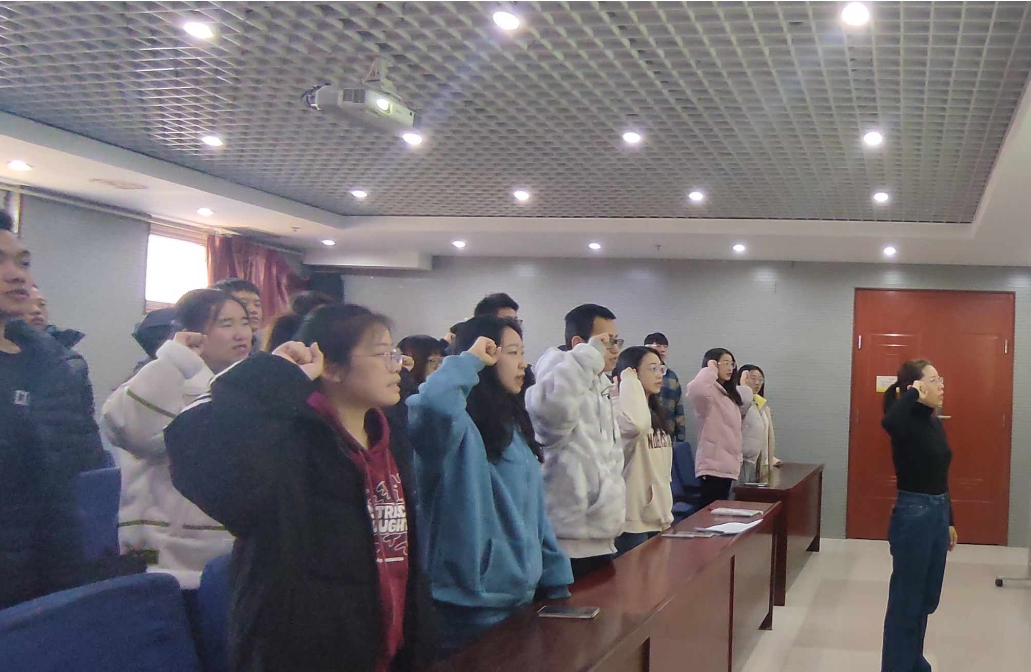 首先,支部书记赵艺茵同志带领大家重温入党誓词,再次表明我们作为新时代青年准备随时为党和人民牺牲一切的理想信念和坚定决心。