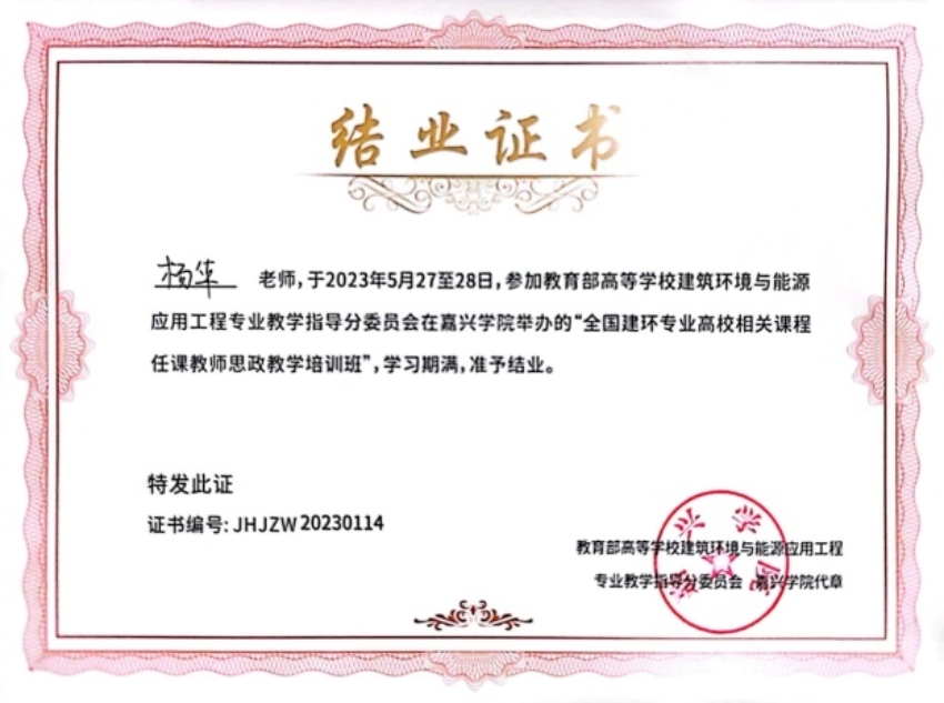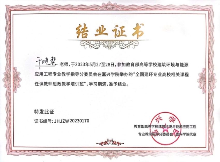 5月26日至28日,由教育部高等学校建筑环境与能源应用工程专业教学指导分委员会主办,嘉兴学院承办的2023年全国高等学校建筑环境与能源应用工程专业课程思政建设研讨会暨课程思政教学培训会在浙江嘉兴成功举办。色情小说 建筑环境与能源应用工程专业杨华、于晓慧两位老师参加本次研讨会和培训。