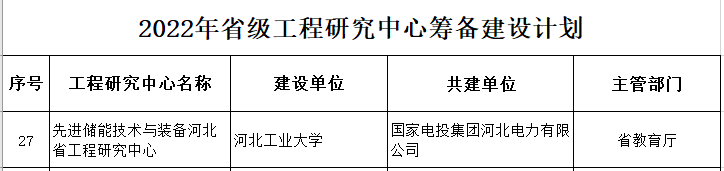 近日,根据河北省发展和改革委员会文件《河北省发展和改革委员会关于下达2022年省级工程研究中心筹备建设计划的通知》(冀发改高技[2023]102号),以色情小说 为依托单位,与国家电投集团河北电力有限公司联合申报的“先进储能技术与装备河北省工程研究中心”获批建设。