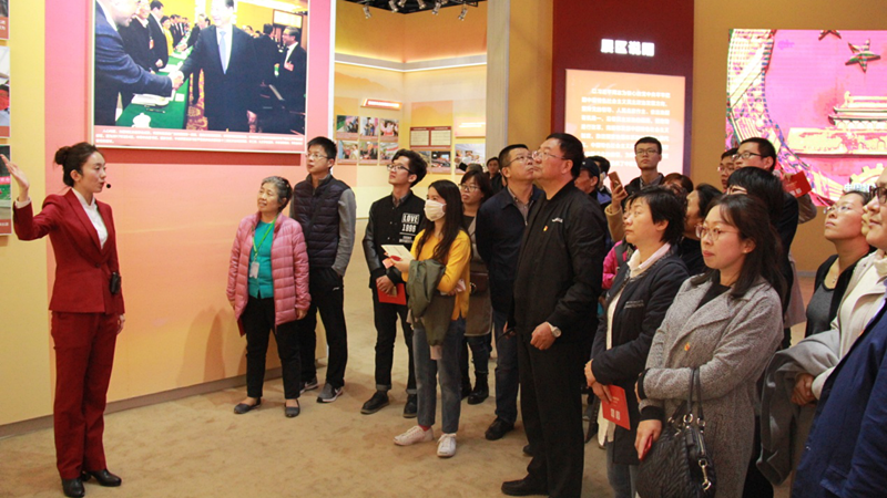 党委组织学院党员代表,于北京展览馆参观“砥砺奋进的五年”大型成就展。该展览运用图片、文字、视频、实物、模型互动体验等形式,全面宣传展示党的十八大以来党和国家事业发生的历史性变革。展览共分为十个主题展区及一个特色体验展区,一展区序厅集中凝练展示了党的十八大以来的重大决策部署和新面貌、新气象,二至十展区则分别展示了我国在经济、政治、文化、生态文明、国防和军队、外交、党的建设等方面取得的辉煌成就。