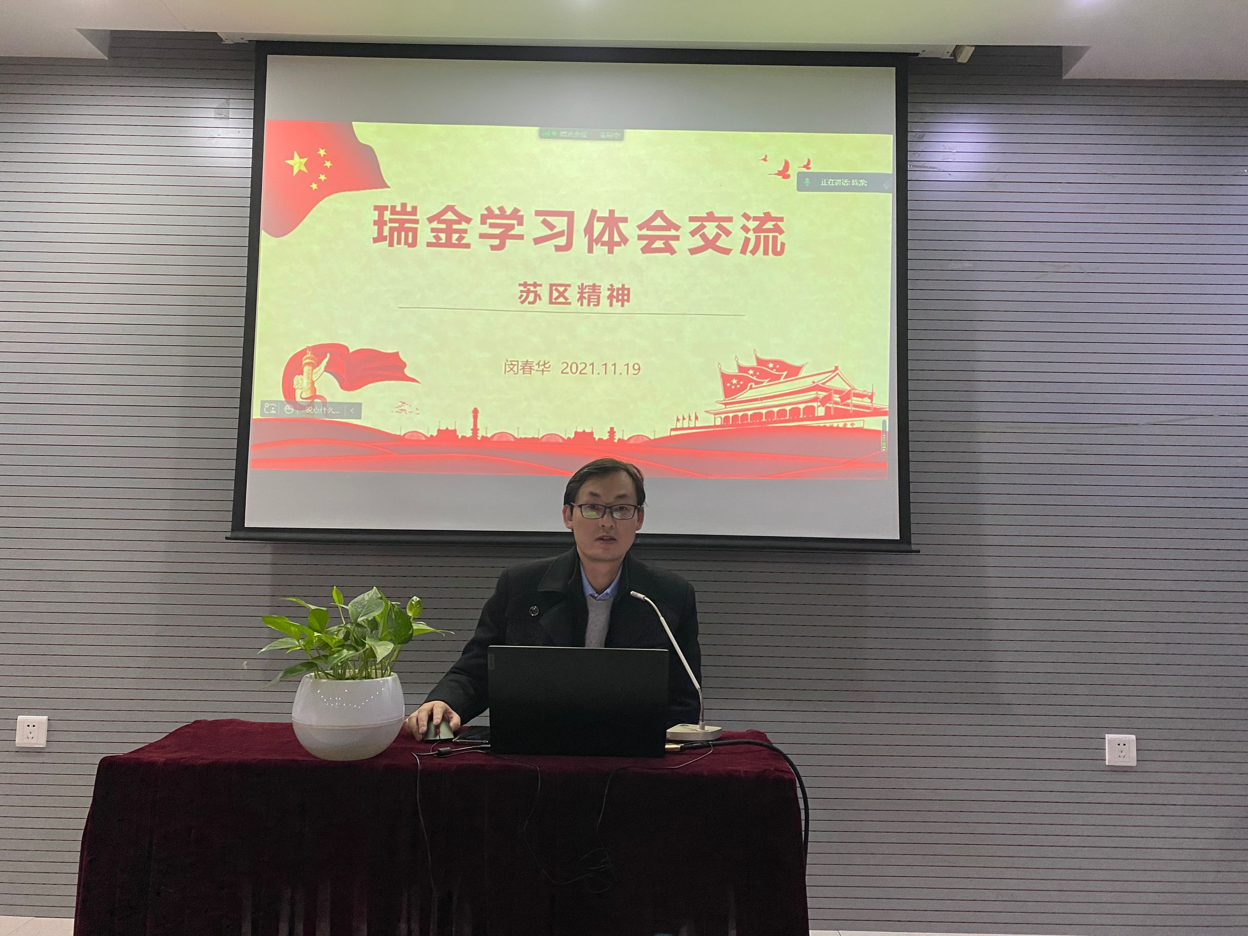 闵院长结合自己在瑞金学习交流的知识与心得开展了此次培训,他以1929年至1934年这段时期为主线,阐述了中国苏区精神,通过“围魏救赵”、 二月来信、古田会议、苏区大发展等一个个生动的历史事件讲述了中国革命红色政权来之不易、新中国来之不易,讲述了党遇到挫折和困境时,如何智慧的解决问题以及如何帮助群众解决生活中的困难。最后闵院长总结了苏区精神的基本内涵,并指出了苏区精神的时代价值和现实意义,为我们在以后的工作学习生活中遇到困难该怎么做,为人处事该如何做提供了思路和方法。