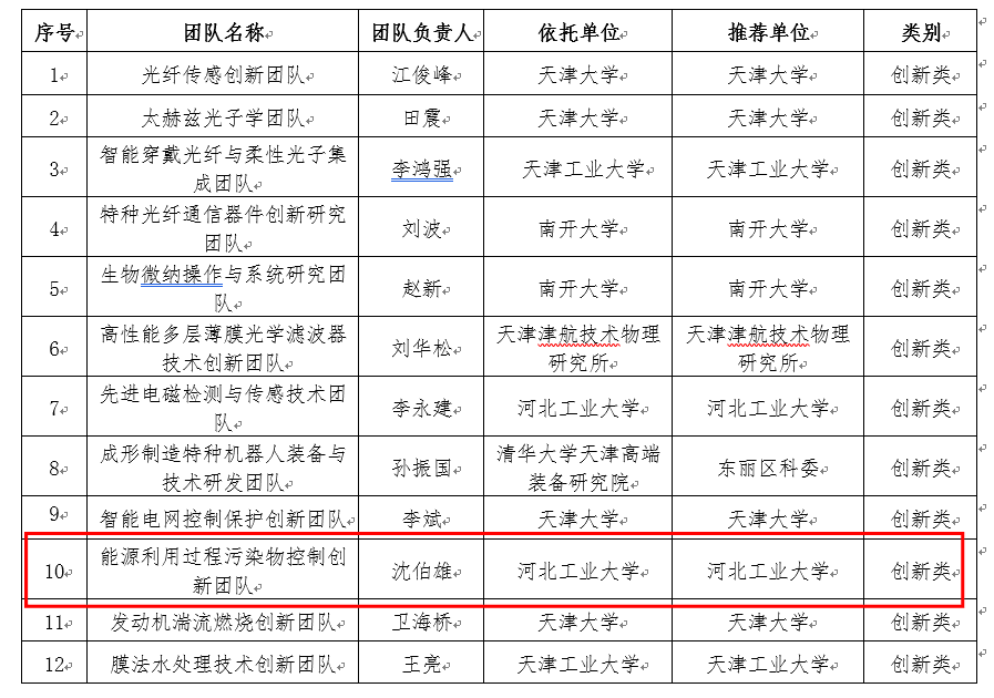 沈伯雄教授领衔的“能源利用过程污染物控制创新团队”入选第三批天津市人才发展特殊支持计划高层次创新创业团队