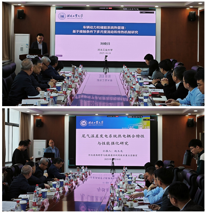 重点实验室骨干成员刘晓日教授作了题为《车辆动力和储能系统热管理:基于接触条件下多尺度流动和传热机制研究》的学术汇报,重点实验室副主任赵玉龙教授作了题为《尾气温差发电系统热电耦合特性与性能强化研究》的学术汇报。