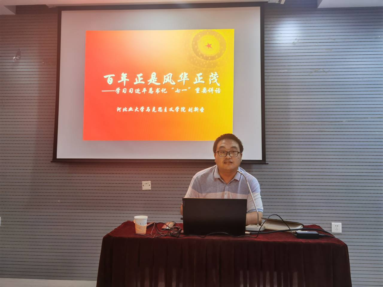 刘新圣副教授以“百年正是风华正茂”为题,用通俗易懂的语言向与会师生阐述了习近平总书记“七一”重要讲话的重要意义,图文并茂地解读了中国共产党百年奋斗的光辉历程,引领大家深刻理解习近平总书记“七一”重要讲话精神主旨和科学内涵。