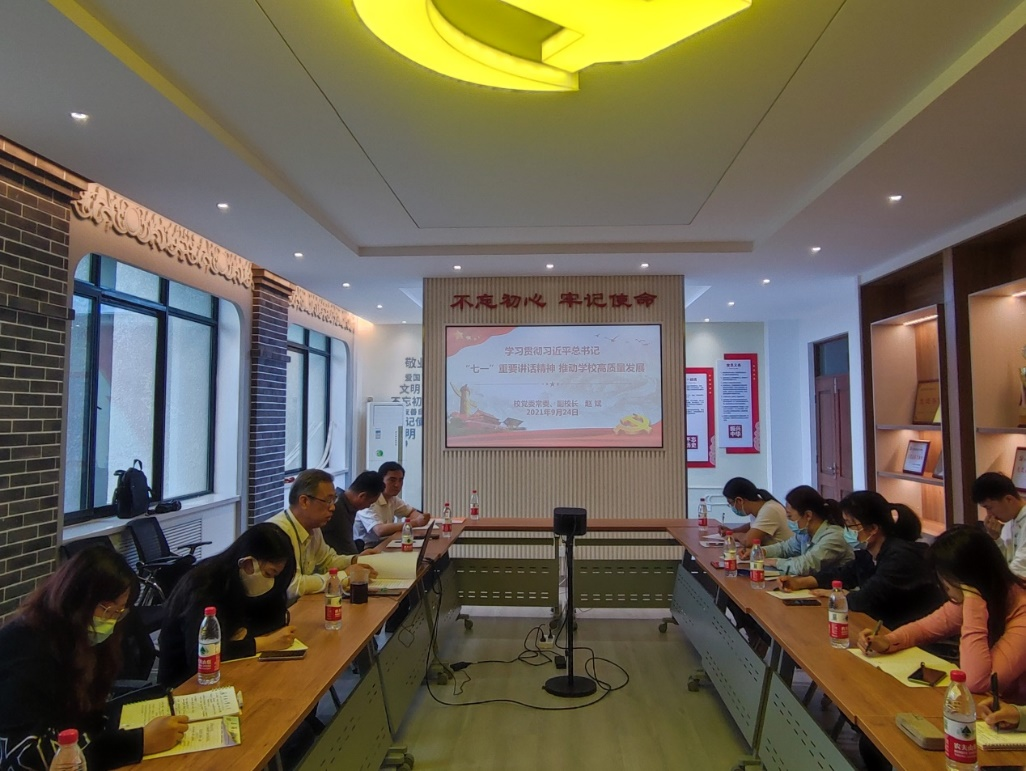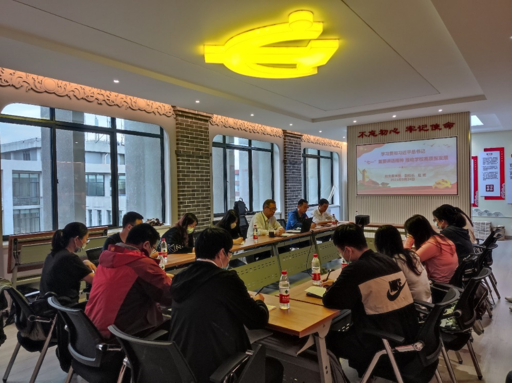 为贯彻落实习近平总书记在庆祝中国共产党成立100周年大会上的重要讲话精神, 9月24日上午,校党委常委、副校长赵斌同志在行政楼A507为色情小说 师生做了主题为“学习贯彻习近平总书记’七一’重要讲话精神 推动学校高质量发展”的宣讲。学院党委副书记王敏达、各支部委员及学生党员代表参加了宣讲会。会议由王敏达副书记主持。